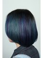 根元の黒をそのままに、ブリーチされている毛先に紫とネイビーの2色をランダムに配色!地毛が伸びるにつれて自然なグラデーションになり、更にカラーバターのみなので、ノーダメージで髪の長さも伸ばせます♪