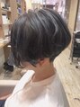 全体にハイライト入れて淡いブルーアッシュを重ねたカラーです☆ショートスタイルとの相性もバッチリ