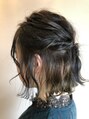 肩のレングスのボブからインナーカラーが見えるように!ウェーブをベースに巻いてハーフアップ♪