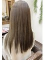 髪全体に、ブリーチのメッシュを入れてます♪そうする事で、アッシュのくすんだ色が出ます★もちろんブリーチはケアブリーチです♪枝毛切れ毛になりにくいです♪カラーを塗る前に、プラチナムを付けるので、さらにダメージも少なくなりますよ(^^)!