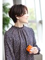前髪をセンターパートで分けて流し、少しウェットな質感をだすことで、今っぽい雰囲気にしました。