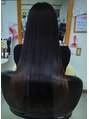 癖毛(小波状毛)、毛量(多い)、傷み(有り)、2年前縮毛矯正利用でどのお店も持たないままでご来店頂きました。問診時、毛髪の仕組み薬剤は役割を説明させて施術致しました。