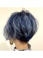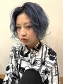 ハイトーンから濃い色味のデニムカラーをオン!ブリーチは必須です★根元付近はオレンジ、黄色が残りやすいのでダークブルーで毛先にいくにつれてペールブルーにグラデーションカラー◎
