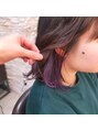 耳まわりと後ろだけをダブルカラーして 今話題のイヤリングカラーに仕上げました! パープルはマニキュアを使っているのでビビットな感じに なっています!