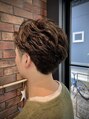 トップはセイムレイヤー、サイドからバックは6ミリで刈り上げに。前髪は上げてものおろしても決まるように眉ラインに設定。直毛の人は緩めのパーマをかけておくとスタイリングが楽ちんに。カラーは地毛の黒髪で男らしさを☆