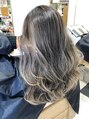 こちらはロングスタイルにエアタッチでバレイヤージュを施しています。2度目のバレイヤージュになりますので、一気にホワイト系まで持って行きました。オンカラーはブリーチ部分との境目が分からないようにして完全に馴染ませています。