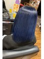 鮮やかなネイビーブルー!徐々に赤みのないアッシュベージュになっていくので、色が抜けも綺麗に楽しめます!ブリーチ2回以上必須です!過去に黒染め、矯正の履歴がある場合は予約時、カウンセリング時にご相談ください!