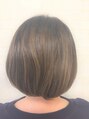 以前は、白髪染めでしたが、いずれグレイヘアに移行していきたいとのご希望です。なので、1年前からオシャレ染めをされています。伸びてきた時、自然な色落ちでいい感じです。また、毛先もメッシュやウィービングをしているような自然な仕上がりにです。