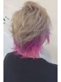 いつものウルフにカラーで遊びを☆淡い色を敢えて2色使うことでより軽さと個性を際立たせています♪上下で2トーンにして上側の色に明度の高い色を持ってくることによりトップの動きが映える様になっています☆
