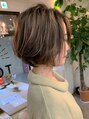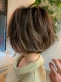 まとまりのある丸いショートボブをベースにしています♪表面にブラウンベージュのハイライトを入れて立体感を出しました♪ベースはピンクベージュにしてあり上品な印象を残しています!全体はコテでワンカール♪ちょうどいい映え感じゃないでしょうか?