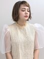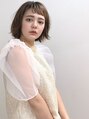 フレキシブルなラフカールで可愛らしさを満喫☆フェースラインをシャープに見せるあご下3cmの前下がりボブがベース。ランダムにウエーブをパーマでオンしてほつれたようなしつ感に。カラーはマット系で。