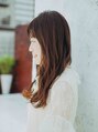 ゆるいウェーブが可愛いロングスタイルになります!ロングでも重く見えないように、顔まわりは軽めにします。前髪も透け感を出し、肌を見せます。巻いて眉の長さにし、カジュアルな印象にします!ベージュ系カラーがツヤ感をだします!