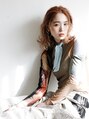 かきあげたスタイリングが今っぽい大人ミディアムスタイルです。カラーはトレンドのオレンジベージュ。ベージュ系カラーかきあげボブは今年とってもおすすめです。