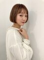 重く見せないナチュラルなボブ。顔周りの髪と表面の柔らかい動きがポイントです!頭を動かした時に自然とふわっと全体が緩く動くようにカットしています。カラーも透明感のあるまろみオレンジで柔らかくまろやかにしています。