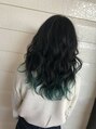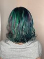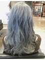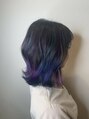 太めのブリーチメッシュにN.インディゴ&ブルーアッシュ。ベースにルミネカラーの暗めネイビーブルー。