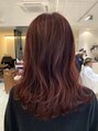 カットは裾に少しだけレイヤーを入れたローレイヤー。カラーは派手すぎないチェリーレッド。ブリーチなしで個性派キュートな印象に。色味はハッキリしつつ、なおかつ暗すぎない仕上がりにしているため透明感も◎。