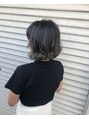 ナチュラルパーマと赤みを抑えたアッシュグレージュ。全体にハイライトと毛先はグラデーションにブリーチしてます。黄みが出てこないようにムラサキシャンプーの使用をお勧めします。