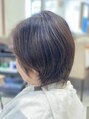 長さをあまり変えずに段の位置をかえてスッキリさせて少し雰囲気も変えました。パーマはかかっていませんがサイドと襟足をタイトにすることでトップのボリュームが出て見えます。
