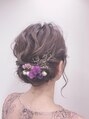 ドライフラワーの飾りを使ったゆるふわスタイル♪ウェーブが入ってふわっとしていますが実は崩れにくいスタイルです☆肩につくくらいの長さがあればできます♪(飾りはお客様個人のものです。)