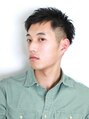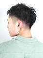 王道ツーブロックヘアも、刈り上げ部分を短めにしてメリハリを付けました。上げてセットすることで、キリっとした印象になります。どのお顔立ち、髪質にも比較的対応の出来るへスタイルですので、ビジネスマン、短くスッキリしたい方にオススメです!