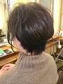 フォルムが綺麗にみえるように後頭部の丸みをいかして襟足を首にそうようにカットしてます。カラーはアドミオアクア+チャコールで柔らかさをだしてます。