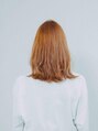 カラーは今が旬のオレンジ系カラーでツヤと透明感の出るミディアムスタイルです。女の子らしいスタイルのなかにもラフで飾りすぎないがおすすめ! 毛先から中間と顔まわりをゆるふわにして動きをだし立体感をだしました。