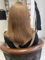 〈カット〉レングスは重めにカットしバランスをみてセニングを入れています。〈カラー〉全体にエアータッチでバランスを見ながらブリーチし根元とベースは暗めにしコントラストをつけて、ブリーチ後ベージュをメインに補色でパープルを少し入れてます。