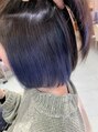 肩上ワンレンボブをベースカットにして、内側の半分くらいのの毛をブリーチ後にネイビー系の色をオンしました。