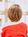 しっかりかっちり系のボブというよりもナチュラルな丸みのあるボブなので毛先にワンカールを加えてさらにやわらかさとラフ感のあるスタイルに!ヘアカラーもミルクティー系のカラーでツヤ感をプラスに!