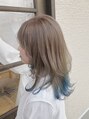 ブリーチ必須の透明感グレージュ×裾オーシャンブルー