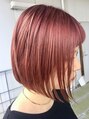 前下がりのボブです。柔らかい感じにしたい方や透明感、抜け感、透け感が欲しい方は是非オススメのスタイルです。