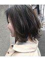 肩に付くか付かないかぐらいの前下がりボブと少し段差をつけたスタイル。カラーはベースは暗めで染めた濃いめのアッシュと細かく入れたハイライトで動きと取れてもきれいな状態になるようにしてます^^