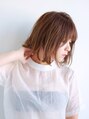 ストレートボブでも柔らかく可愛いヘア。あごラインでカットして顔回りの可愛さを残します。前髪わきに顔に沿うようなやわらかい毛束を作って、柔らかな質感効果も。 切りっぱなしのラインを柔らかく作って、はっきりしすぎず全体を可愛く見せます。