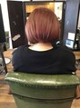ボブベースのカット毛先にブリーチが残っている髪に遊び心のあるピンクベージュに染めました。光に当たると違う感じの色味も楽しめます☆
