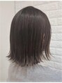 切りっぱなしのボブスタイル☆アイロンで外ハネに仕上げるとなおかわいい!カラーはアッシュで暗いけど透明感あるカラーです!