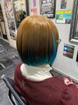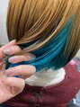 インナーブリーチした後、インナーをターコイズブルーに上をブリーチ無しでライトベージュに仕上げました!