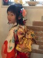七五三の七歳の女の子です。ボブのヘアスタイルをいかして、ハーフアップ風に。