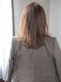 前髪はかきあげスタイルにし、おさまりがよくなるようにカットすることでワンカールのみのスタイリングでも可愛くまとまるヘアースタイルに。 根元を少し暗く設定し染めることで立体感が出て、 外国人のような印象を与えるスタイルにしました。