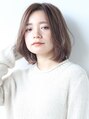 丸顔タイプの方はトップと顎下にボリュームを出すとバランスが良くなり小顔効果が出ます。カラーはベージュ系の色味で柔らかい透明感のある雰囲気になます。[青山/表参道/南青山/外苑前/原宿/渋谷]