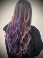 ブラウン、ピンク、ヴァイオレット、ターコイズ、4色を使った派手髪イメチェンエクステです^ ^