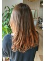 毛先中心にカールをつけて柔らかさが感じられます。長さを整えて、カラーをしました。カラーは根元から毛先にかけて段々と明るい色になるグラデーションカラーです。スタイリングの時に髪の動きがでてとってもいいです。
