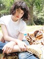 柔らかくてしっかり大きめカールが可愛いショートヘア。根元にしっかりパーマをかけるのがポイント。襟足はスッキリ、伸ばしかけでスタイルに変化が欲しい人にオススメのヘアスタイル。カラーは透明感のあるオリーブベージュ。