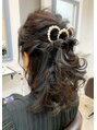 ハーフアップスタイルです☆お持ちいただいたパールのUピンでリボン風にしてみました!髪飾りをお持ちの方はぜひご相談ください♪