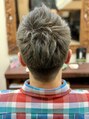 サイドと襟足を刈り上げてトップを立たせるソフトモヒカンスタイル。カラーはブルーとシルバーのミックスでカッコよく★