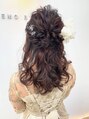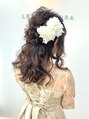 もこもこに崩したハーフアップ。お呼ばれや二次会はもちろん、普段使いにも良しです。ドライフラワーやかすみ草との相性もバッチリ!