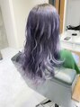 全頭ブリーチして嫌な赤味を消して人気のオリジナルブルーバイオレットをのせます!赤味の全く無 いブリーチならではの透明感のあるグレーカラーを実現しま す!ブリーチの回数は髪質により個人差がありますのでご相 談くださいね!!