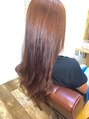 縮毛矯正で、ツヤツヤのストレートヘアーに、毛先にデジタルパーマで動きをつけて華やかなスタイル。ダメージレス処理の徹底で、毛先まで全然絡まず、サラサラです。