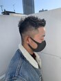 メンズのフェードカットスタイル♪サイド、バックは0.08ミリからの刈り上げにトップは少し長めに残しております(^▽^)/スタイリングの時は少しハードめのワックスが◎少し短めのフェードスタイルになってます♪