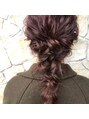 編みおろしアレンジで可愛くまとめたスタイルです。ランダムな感じに崩して、カジュアルなアレンジにもなったり、お呼ばれにもピッタリなアレンジです。