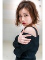 肩上からあごラインの長さでコーデしやすい切りっぱなしボブスタイル。アイロンスタイリングをベースにオイルスタイリング剤でニュアンスを整えて楽しむデザイン。